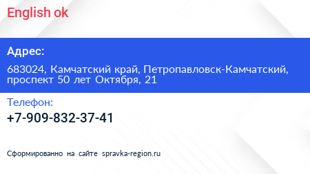 English`ok по адресу 683024, Камчатский край, Петропавловск-Камчатский, проспект 50 лет Октября, 21 в дальнейшем Организация, размещена в следующих категориях:
