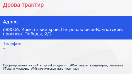 Дрова, трактир по адресу 683006, Камчатский край, Петропавловск-Камчатский, проспект Победы, 2/2 в дальнейшем Организация, размещена в следующих категориях: