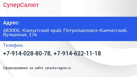 СуперСалют по адресу 683006, Камчатский край, Петропавловск-Камчатский, Вулканная, 17в в дальнейшем Организация, размещена в следующих категориях: