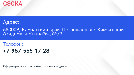 СЭСКА по адресу 683009, Камчатский край, Петропавловск-Камчатский, Академика Королёва, 65/3 в дальнейшем Организация, размещена в следующих категориях: