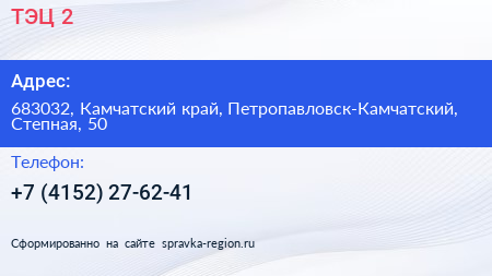 ТЭЦ-2 по адресу 683032, Камчатский край, Петропавловск-Камчатский, Степная, 50 в дальнейшем Организация, размещена в следующих категориях: