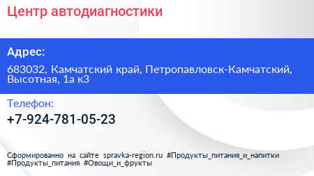Центр автодиагностики по адресу 683032, Камчатский край, Петропавловск-Камчатский, Высотная, 1а к3 в дальнейшем Организация, размещена в следующих категориях: