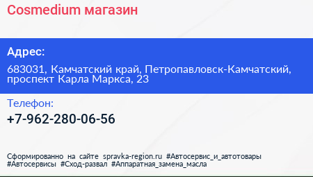 Cosmedium, магазин по адресу 683031, Камчатский край, Петропавловск-Камчатский, проспект Карла Маркса, 23 в дальнейшем Организация, размещена в следующих категориях: