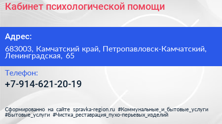 Кабинет психологической помощи по адресу 683003, Камчатский край, Петропавловск-Камчатский, Ленинградская, 65 в дальнейшем Организация, размещена в следующих категориях: