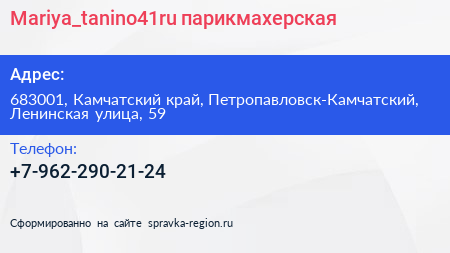 Mariya_tanino41ru, парикмахерская по адресу 683001, Камчатский край, Петропавловск-Камчатский, Ленинская улица, 59 в дальнейшем Организация, размещена в следующих категориях: