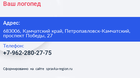 Ваш логопед по адресу 683006, Камчатский край, Петропавловск-Камчатский, проспект Победы, 27 в дальнейшем Организация, размещена в следующих категориях:
