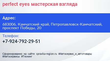 perfect eyes, мастерская взгляда по адресу 683006, Камчатский край, Петропавловск-Камчатский, проспект Победы, 20 в дальнейшем Организация, размещена в следующих категориях: