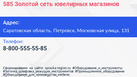 585*Золотой, сеть ювелирных магазинов по адресу Саратовская область, Петровск, Московская улица, 131 в дальнейшем Организация, размещена в следующих категориях: