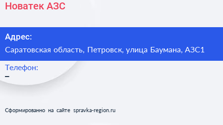 Новатек, АЗС по адресу Саратовская область, Петровск, улица Баумана, АЗС1 в дальнейшем Организация, размещена в следующих категориях: