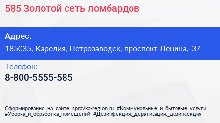 585*Золотой, сеть ломбардов по адресу 185035, Карелия, Петрозаводск, проспект Ленина, 37 в дальнейшем Организация, размещена в следующих категориях: