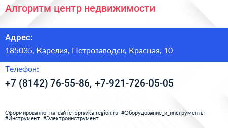 Алгоритм, центр недвижимости по адресу 185035, Карелия, Петрозаводск, Красная, 10 в дальнейшем Организация, размещена в следующих категориях: