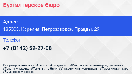 Бухгалтерское бюро по адресу 185003, Карелия, Петрозаводск, Правды, 29 в дальнейшем Организация, размещена в следующих категориях: