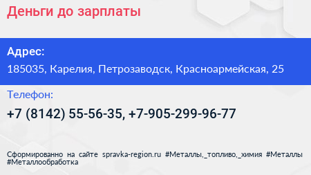 Деньги до зарплаты по адресу 185035, Карелия, Петрозаводск, Красноармейская, 25 в дальнейшем Организация, размещена в следующих категориях:
