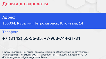 Деньги до зарплаты по адресу 185034, Карелия, Петрозаводск, Ключевая, 14 в дальнейшем Организация, размещена в следующих категориях: