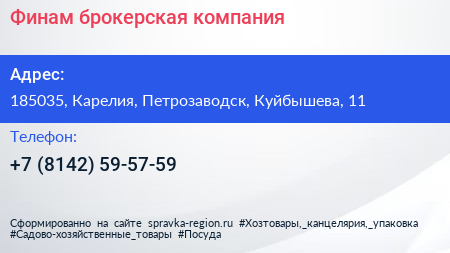 Финам, брокерская компания по адресу 185035, Карелия, Петрозаводск, Куйбышева, 11 в дальнейшем Организация, размещена в следующих категориях: