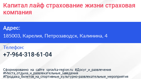 Капитал лайф страхование жизни, страховая компания по адресу 185003, Карелия, Петрозаводск, Калинина, 4 в дальнейшем Организация, размещена в следующих категориях: