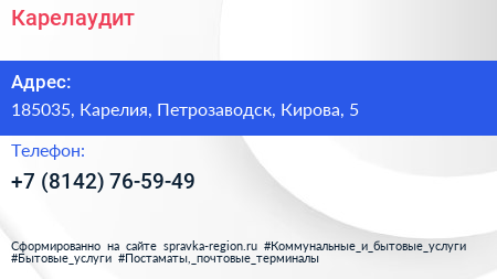 Карелаудит по адресу 185035, Карелия, Петрозаводск, Кирова, 5 в дальнейшем Организация, размещена в следующих категориях: