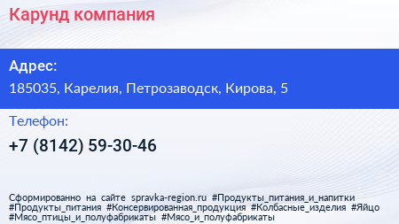 Карунд, компания по адресу 185035, Карелия, Петрозаводск, Кирова, 5 в дальнейшем Организация, размещена в следующих категориях: