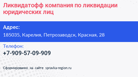 Ликвидатофф, компания по ликвидации юридических лиц по адресу 185035, Карелия, Петрозаводск, Красная, 28 в дальнейшем Организация, размещена в следующих категориях: