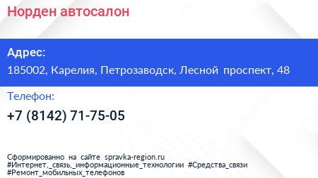 Норден, автосалон по адресу 185002, Карелия, Петрозаводск, Лесной проспект, 48 в дальнейшем Организация, размещена в следующих категориях: