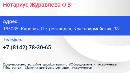 Нотариус Журавлева О.В. по адресу 185035, Карелия, Петрозаводск, Красноармейская, 33 в дальнейшем Организация, размещена в следующих категориях: