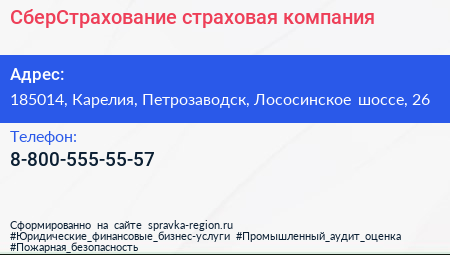 СберСтрахование, страховая компания по адресу 185014, Карелия, Петрозаводск, Лососинское шоссе, 26 в дальнейшем Организация, размещена в следующих категориях:
