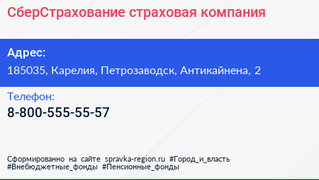 СберСтрахование, страховая компания по адресу 185035, Карелия, Петрозаводск, Антикайнена, 2 в дальнейшем Организация, размещена в следующих категориях: