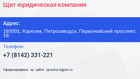 Щит, юридическая компания по адресу 185001, Карелия, Петрозаводск, Первомайский проспект, 18 в дальнейшем Организация, размещена в следующих категориях: