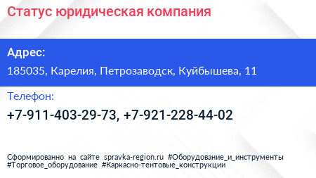 Статус, юридическая компания по адресу 185035, Карелия, Петрозаводск, Куйбышева, 11 в дальнейшем Организация, размещена в следующих категориях: