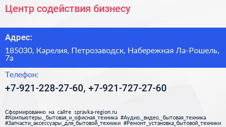 Центр содействия бизнесу по адресу 185030, Карелия, Петрозаводск, Набережная Ла-Рошель, 7а в дальнейшем Организация, размещена в следующих категориях: