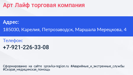 Арт Лайф, торговая компания по адресу 185030, Карелия, Петрозаводск, Маршала Мерецкова, 4 в дальнейшем Организация, размещена в следующих категориях: