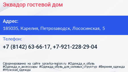 Эквадор, гостевой дом по адресу 185035, Карелия, Петрозаводск, Лососинская, 5 в дальнейшем Организация, размещена в следующих категориях: