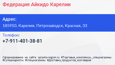 Федерация Айкидо Карелии по адресу 185910, Карелия, Петрозаводск, Красная, 33 в дальнейшем Организация, размещена в следующих категориях: