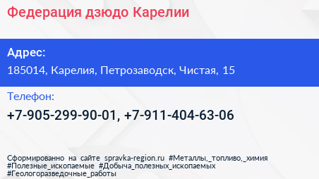 Федерация дзюдо Карелии по адресу 185014, Карелия, Петрозаводск, Чистая, 15 в дальнейшем Организация, размещена в следующих категориях: