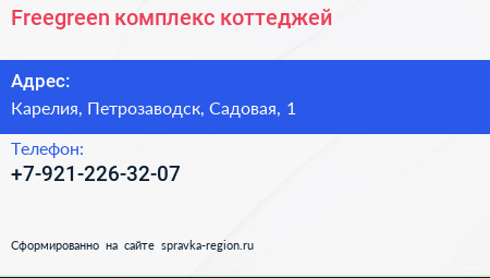 Freegreen, комплекс коттеджей по адресу Карелия, Петрозаводск, Садовая, 1 в дальнейшем Организация, размещена в следующих категориях: