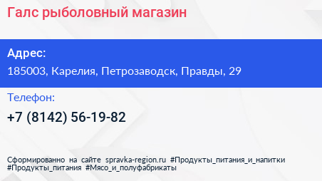 Галс, рыболовный магазин по адресу 185003, Карелия, Петрозаводск, Правды, 29 в дальнейшем Организация, размещена в следующих категориях: