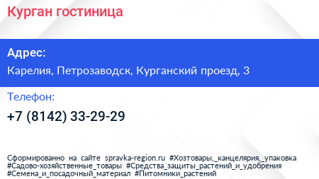 Курган, гостиница по адресу Карелия, Петрозаводск, Курганский проезд, 3 в дальнейшем Организация, размещена в следующих категориях:
