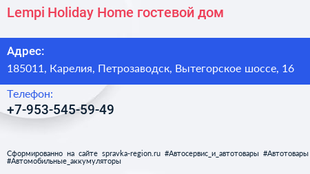 Lempi Holiday Home, гостевой дом по адресу 185011, Карелия, Петрозаводск, Вытегорское шоссе, 16 в дальнейшем Организация, размещена в следующих категориях: