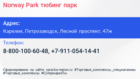 Norway Park, тюбинг-парк по адресу Карелия, Петрозаводск, Лесной проспект, 47ж в дальнейшем Организация, размещена в следующих категориях: