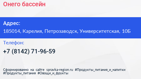 Онего, бассейн по адресу 185014, Карелия, Петрозаводск, Университетская, 10Б в дальнейшем Организация, размещена в следующих категориях: