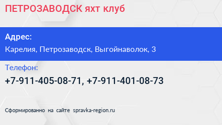 ПЕТРОЗАВОДСК, яхт-клуб по адресу Карелия, Петрозаводск, Выгойнаволок, 3 в дальнейшем Организация, размещена в следующих категориях: