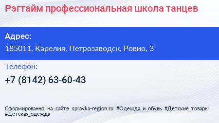 Рэгтайм, профессиональная школа танцев по адресу 185011, Карелия, Петрозаводск, Ровио, 3 в дальнейшем Организация, размещена в следующих категориях: