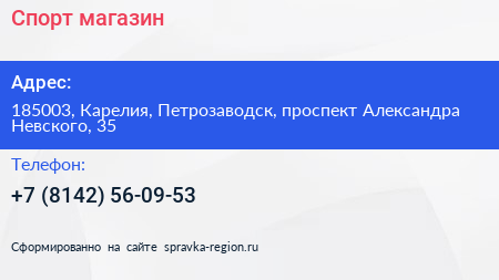 Спорт, магазин по адресу 185003, Карелия, Петрозаводск, проспект Александра Невского, 35 в дальнейшем Организация, размещена в следующих категориях: