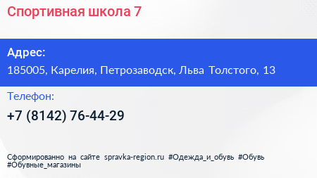 Спортивная школа №7 по адресу 185005, Карелия, Петрозаводск, Льва Толстого, 13 в дальнейшем Организация, размещена в следующих категориях: