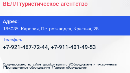 ВЕЛЛ, туристическое агентство по адресу 185035, Карелия, Петрозаводск, Красная, 28 в дальнейшем Организация, размещена в следующих категориях: