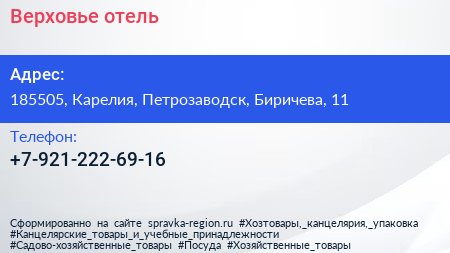 Верховье, отель по адресу 185505, Карелия, Петрозаводск, Биричева, 11 в дальнейшем Организация, размещена в следующих категориях: