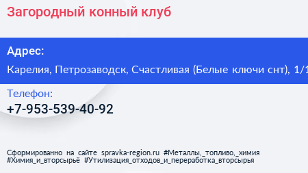 Загородный конный клуб по адресу Карелия, Петрозаводск, Счастливая (Белые ключи снт), 1/1 в дальнейшем Организация, размещена в следующих категориях: