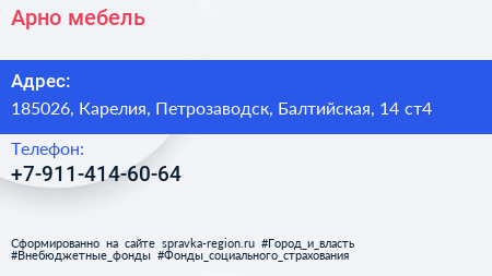 Арно мебель по адресу 185026, Карелия, Петрозаводск, Балтийская, 14 ст4 в дальнейшем Организация, размещена в следующих категориях: