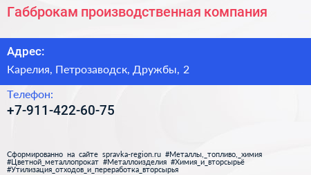Габброкам, производственная компания по адресу Карелия, Петрозаводск, Дружбы, 2 в дальнейшем Организация, размещена в следующих категориях: