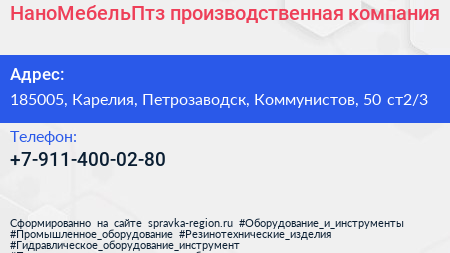 #НаноМебельПтз, производственная компания по адресу 185005, Карелия, Петрозаводск, Коммунистов, 50 ст2/3 в дальнейшем Организация, размещена в следующих категориях: